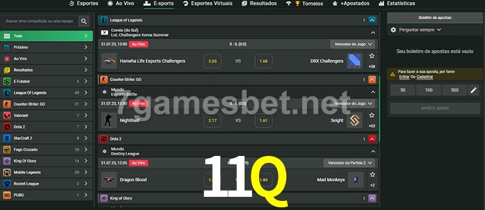 O 11Q oferece uma grande seleção de opções de apostas em e-sports com probabilidades competitivas